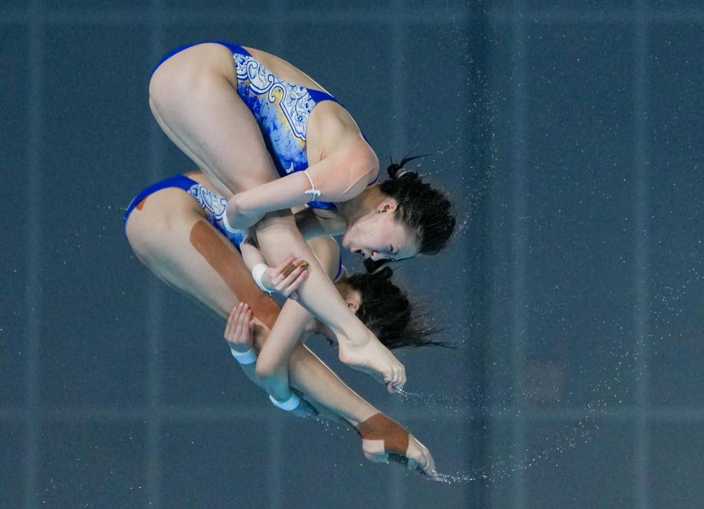11月6日,上海队组合陈芋汐/掌敏洁在比赛中。新华社记者 晋美多吉 摄 陈芋汐/掌敏洁展现出了默契和实力,以5轮第一、总成绩350.22的分数将金牌稳稳收入囊中。 “从配不齐到配齐,我觉得确实是经历了不少磨合。”掌敏洁说,今天比完感觉挺好的,也跳出了近期最同步、最整齐的一次。陈芋汐在赛后表示,今年新加坡世锦赛后,她和搭档迅速恢复了系统训练,未来也会踏踏实实,一步一个脚印向更高目标迈进。 决赛中,全红婵和王伟莹仅在第一跳时拿到单轮第二,之后未能取得更佳名次,在最后一轮时掉出前三,最终获得第五名。