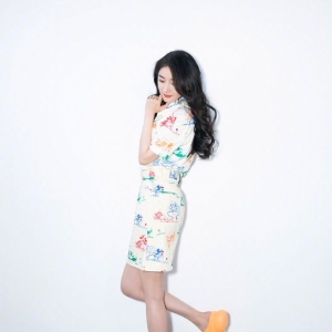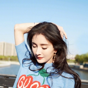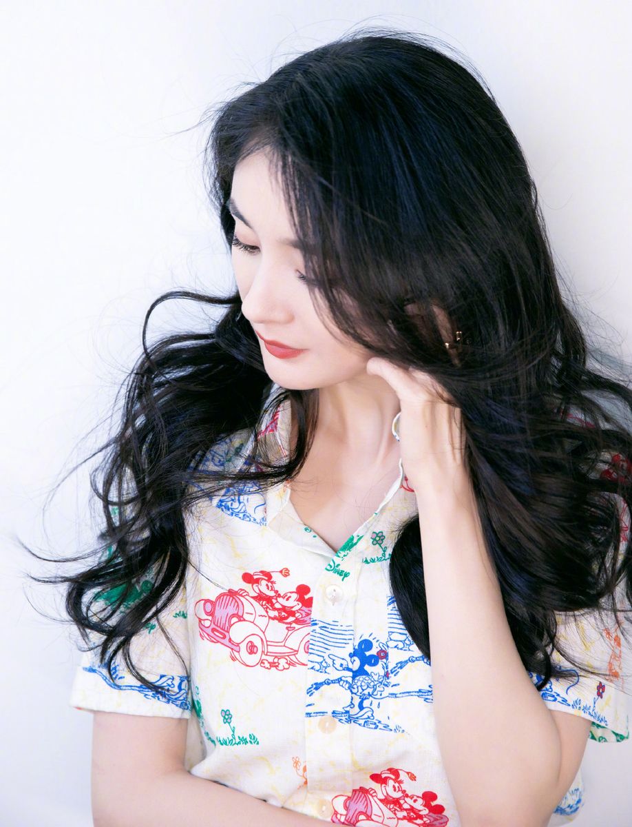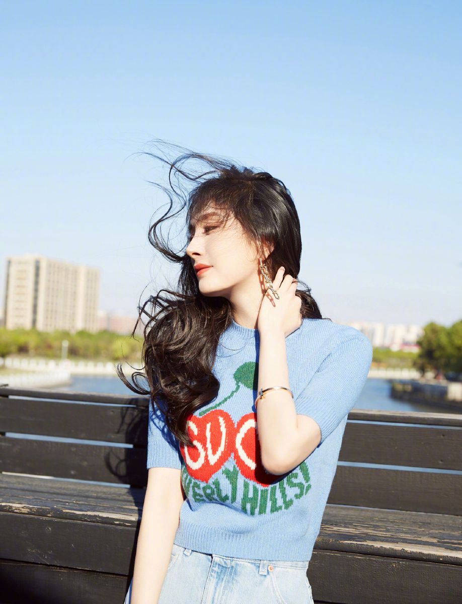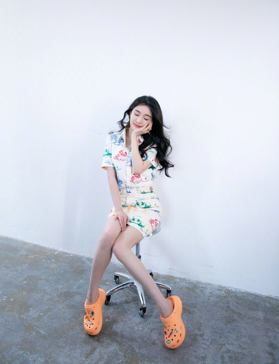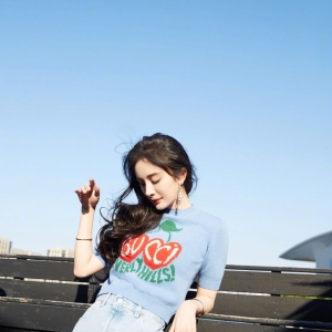 杨幂卡通印花裙与牛仔短裙性感写真图片