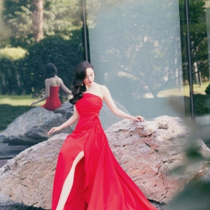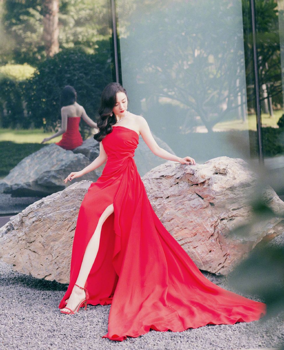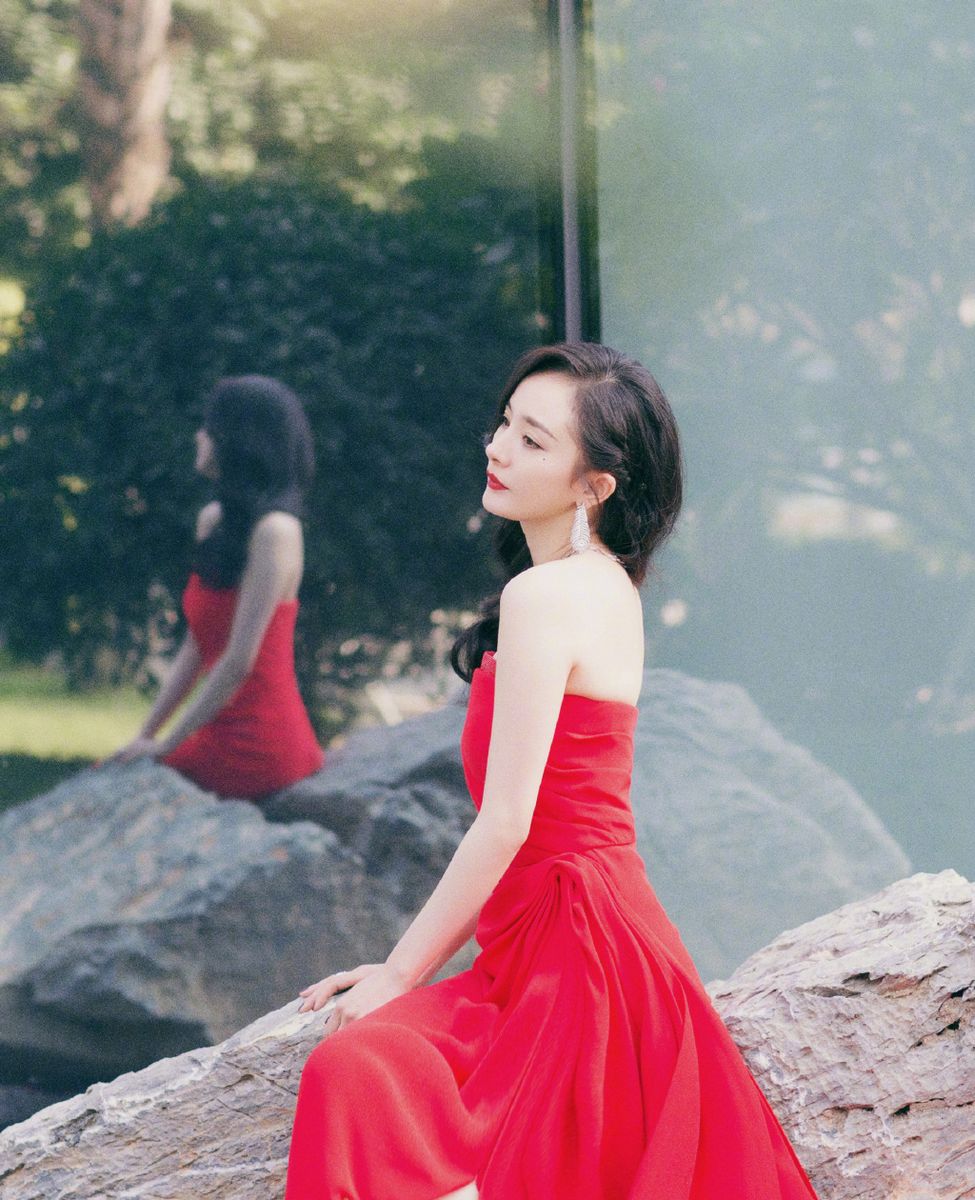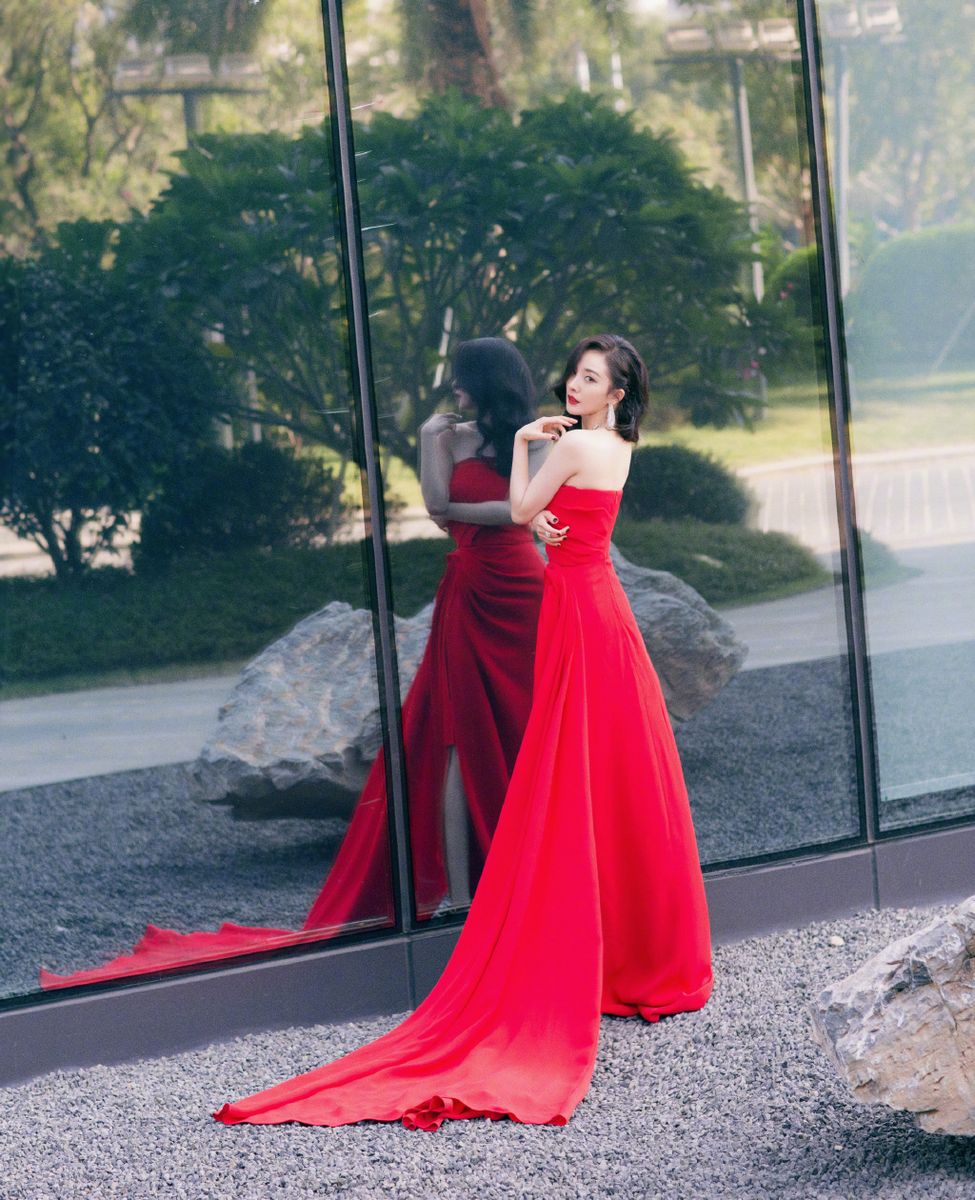 金鸡百花电影节杨幂一席薄纱红裙性感惊艳写真