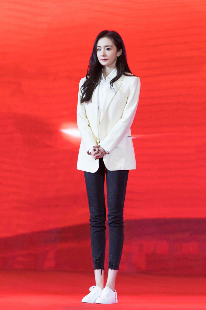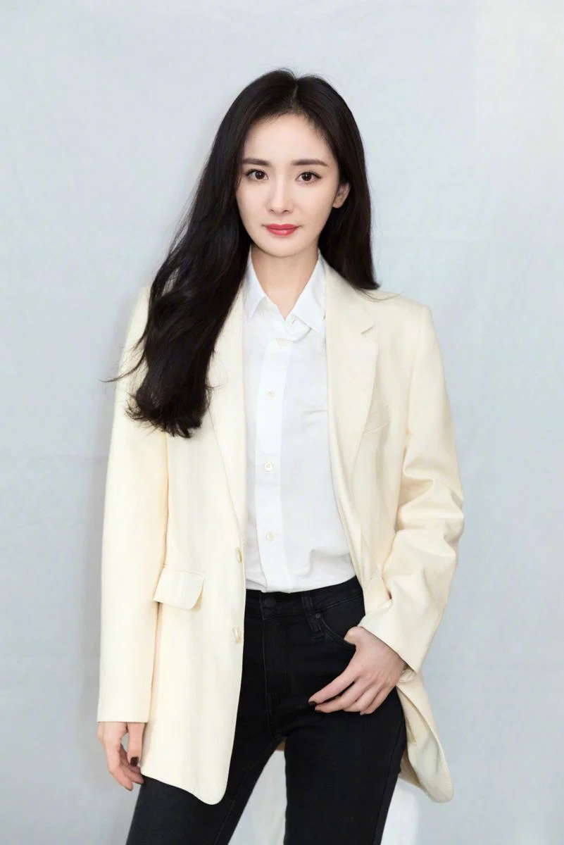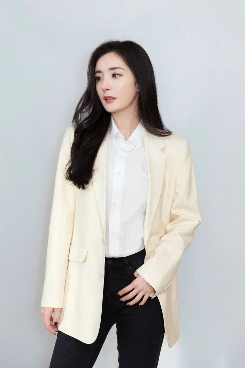杨幂白色西装时尚干练演绎职场女性性感美图
