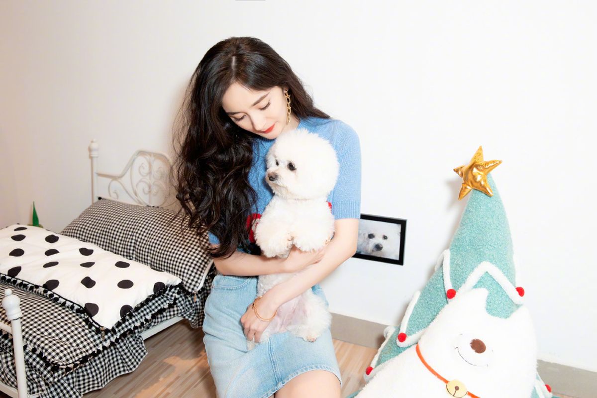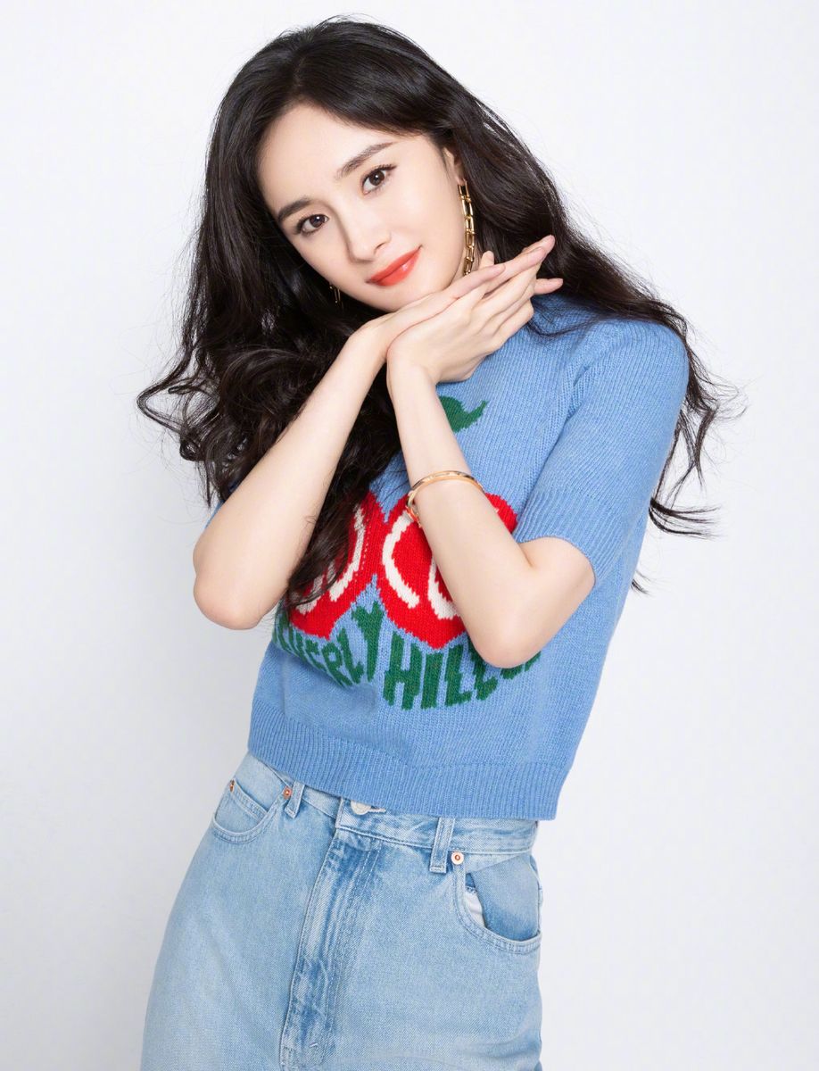 杨幂针织毛衣牛仔短裙性感休闲风格写真