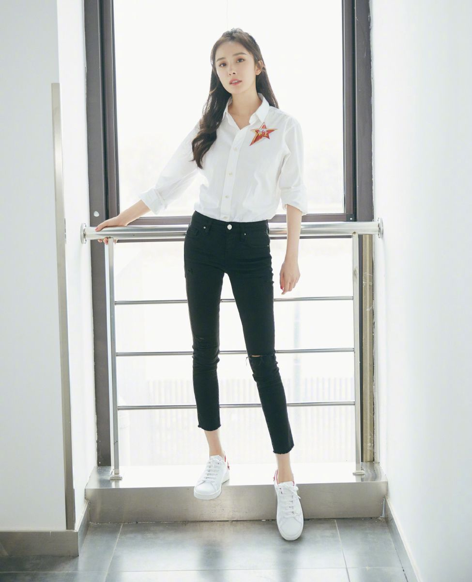 星光平江杨幂白衬衫细长美腿牛仔长裤性感写真