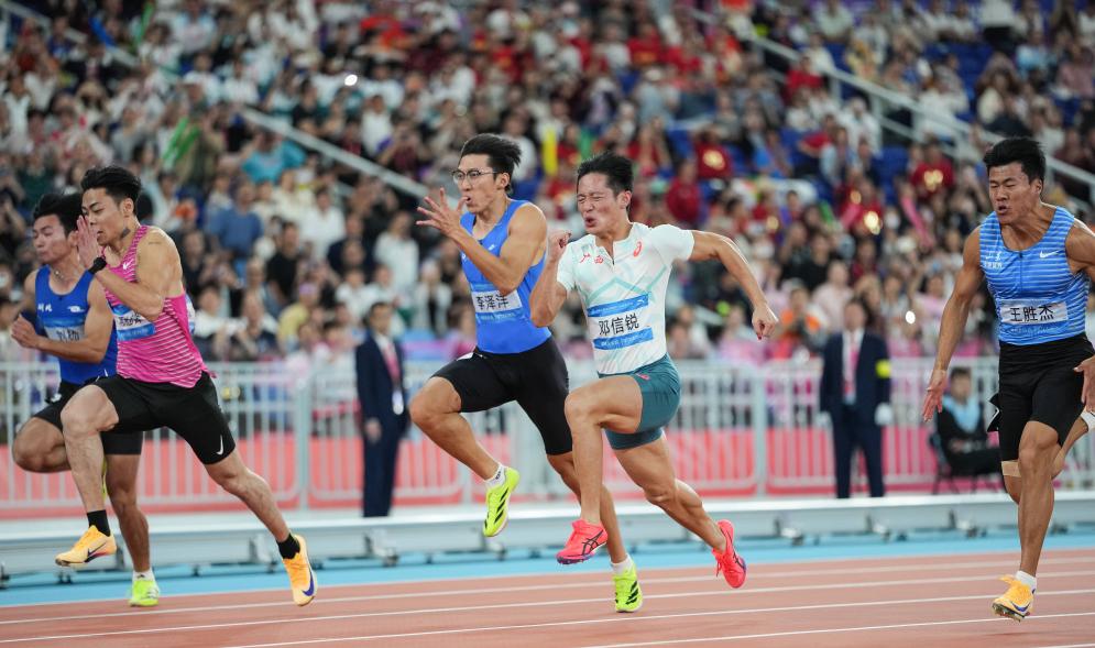 2023年是邓信锐参加国内专业赛事的第一年,几个月时间里他四次提升个人最好成绩,并且在2023年的全国田径锦标赛上以10秒23的成绩收获百米冠军。 2025年邓信锐再次迎来爆发,先后刷新60米、100米的个人最好成绩。当年8月的全国田径锦标赛男子100米决赛中,他更以10秒06收获100米冠军。这一成绩不仅让他成为史上第七位突破10秒10的中国队运动员,也成为继苏炳添、谢震业和张培萌之后,并列第四快的中国百米“飞人”。 这次在天津举行的室内田径亚锦赛,邓信锐在60米半决赛中跑出6秒56,刷新了个人最好成绩。 当然,成长的道路不会一帆风顺,邓信锐也经历过职业低谷和心理淬炼。整个2024年他几乎都在养伤;报以最大期待的2025年全运会,他在100米决赛中仅名列第七。