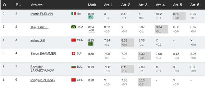 9月17日,2025年东京田径世锦赛进入第5比赛日。在男子跳远决赛的比赛当中,两位中国选手石雨豪和张溟鲲出战。凭借着第二跳8米33的成绩,石雨豪成功拿下了该项目的铜牌,这是中国队在本届世锦赛所收获的第3枚奖牌。 【各项纪录】 男子跳远世界纪录由鲍威尔在1991年创造,成绩为8米95。 亚洲纪录由沙特选手阿尔库瓦力迪在2006年创造,成绩为8米48。 全国纪录由李金哲在2014年创造,成绩为8米47。 【预赛回顾】 预赛石雨豪跳出了8米08的成绩,排名所有选手第8位晋级。张溟鲲跳出7米98的成绩,排名第12位压线晋级。 【决赛表现】 决赛第一跳石雨豪就有着不错的发挥,跳出了7米84的成绩,排名所有选手第4位。张溟鲲第一跳因为犯规而没有成绩。 第二跳石雨豪再次取得提升,从助跑到踏板到起跳一气呵成,8米33的成绩创造了赛季最佳,一跃上升到了第1的位置。张溟鲲在第二跳跳出了7米83的成绩,排名第10位。 第三跳张溟鲲极限上板,跳出了8米18的成绩,排名上升到了第5位。石雨豪跳出了8米06的成绩,在第一成绩相同的情况下,因为第二成绩落后1厘米,排名降到第2位。值得一提的是,卫冕冠军滕托格鲁7米83仅排名第11位,无缘后三跳的机会。 第四跳石雨豪因为犯规没有成绩,张溟鲲这一跳选择了免跳,为后面积蓄体力。此前跟石雨豪均跳出8米33的牙买加选手盖尔,在这一跳跳出8米34的成绩。 第五跳石雨豪选择免跳,为最后一跳做准备。张溟鲲跳出了 意大利选手弗尔拉尼在这一跳跳出8米39刷新PB,上升到了第1的位置,将石雨豪挤到了第3位。 最后一跳张溟鲲选择免跳,石雨豪在最后一跳之前已经提前锁定了一枚奖牌。最后一跳的石雨豪上板时犯规,无缘改写自己奖牌的颜色。 【最终成绩】 意大利选手弗尔拉尼以8米39的成绩获得金牌,牙买加选手盖尔8米34获得银牌,中国选手石雨豪8米33获得了铜牌。 来源网址:https://www.163.com/dy/article/K9MHIQKF0529TPTB.html |