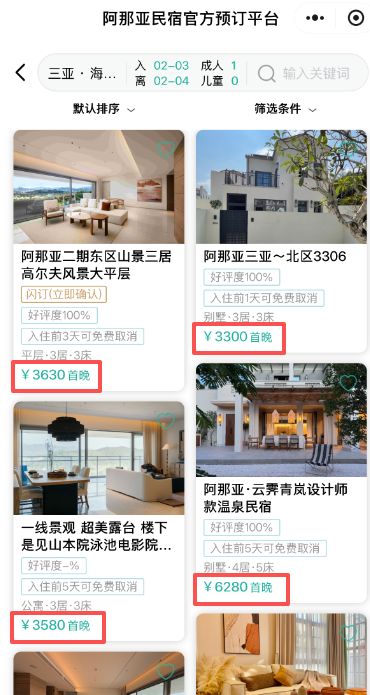 很多业主,都不舍得租。 要不然,就把房子交给阿那亚自营民宿平台统一管理,进行高端短租。 毕竟都知道,阿那亚会把房子维护的极好。 这份“惜租”直接催生了极具说服力的资产表现。 以早期一期房源为例,套总价约在800万至1000万,而旺季时,一晚的短租就可达三四千元。